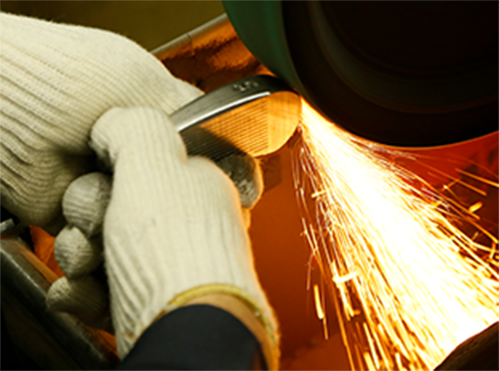 大きめに鍛造されたヘッドを手作業の研磨で形を整える。研磨代が大きく、職人の技量差もあるため、個体差が生じやすい
